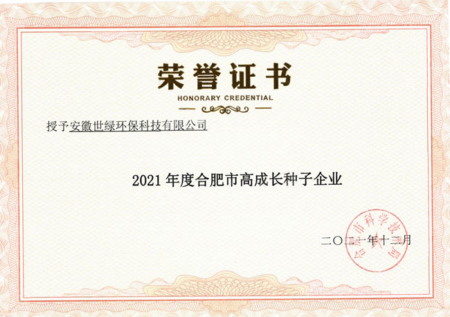 2021年合肥市高成長(zhǎng)企業(yè)認(rèn)定結(jié)果正式出爐啦!近日,合肥市科技局委托各區(qū)管委會(huì),對(duì)認(rèn)定企業(yè)發(fā)放了認(rèn)定證書。安徽世綠環(huán)保榮獲2021年合肥市高成長(zhǎng)種子企業(yè)。