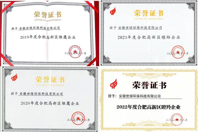 安徽世綠環保公司一直以高質量的產品和服務為客戶創造價值,不斷致力于推動綠色環保與科技創新的發展。繼2019年獲得高成長雛鷹企業后, 世綠環保已連續五年獲得高新區高成長企業稱號。在近期的合肥高成長企業認定中,再次被認定為高成長“瞪羚企業”,這也是在2021年首次獲得高成長“瞪羚企業”后,連續第三年被認定為高成長“瞪羚企業”。