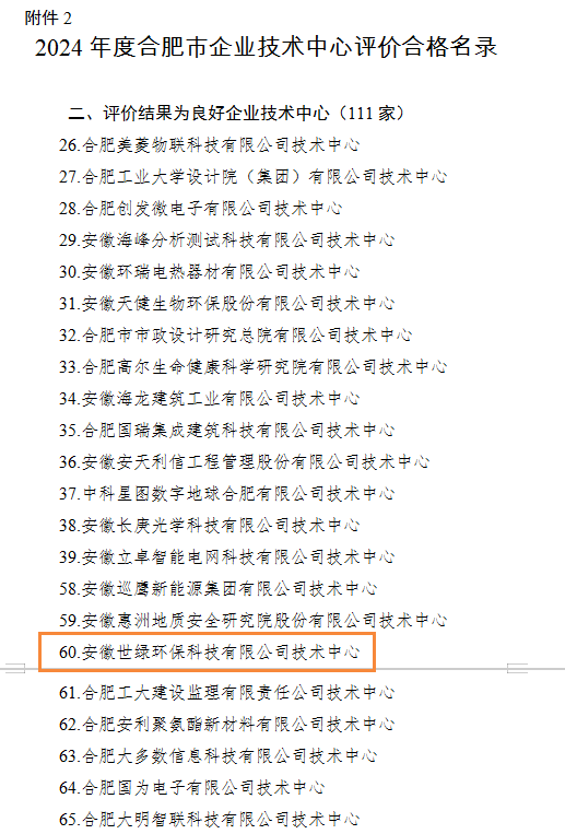 安徽世綠環(huán)保科技有限公司技術(shù)中心通過評價