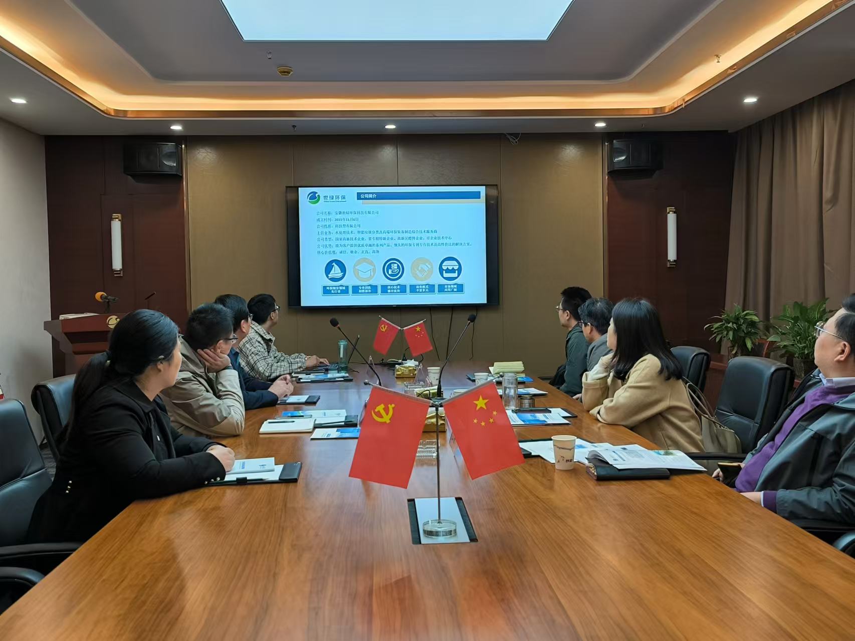 在隨后的座談會上,雙方就如何加強政企合作、推動綠色產業項目落地等議題進行了深入探討。周著部長表示,迎江區政府一直致力于打造綠色、低碳、循環的現代產業體系,世綠環保作為環保領域的佼佼者,其先進的技術和豐富的經驗將為迎江區的綠色發展注入新的活力。他希望雙方能進一步加強溝通,共同探索合作新模式,實現互利共贏。